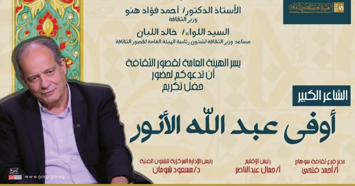 ،ليحفظ لها ولمصر والانسانية كلها تراث رموز ثقافية وإبداعية أثرت المشهد الابداعى حقيقة،والأهم ألا يتركنا نحن تلاميذه ومحبيه ومريديه وأجيال سوهاج المتعاقبة فى فراغ قيمى هائل – كما كانت الحال – حال سوهاج الثقافية – قبل دراسات وإصدارات الناقد والمفكر والمؤرخ الثقافى الكبير أوفى عبد الله عن رموز مهمة مثل :الباصونى وإبراهيم النجارى ومحمود بكر هلال وأحمد سعد الدين ابو رحاب وغيرهم العشرات من رواد سوهاج، فضلًا عن دوره الكبير فى الكتابة عن مبدعى سوهاج من مختلف الأجيال، ويكفينى شرفًا انه كان أول من كتب دراسة نقدية متكاملة عن شعرى ضمنتها مزهوًا – ولا ازال – ديوانى الأول ثلاثية الليل ، ومثلى العشرات على طول الخريطة الإبداعية وعرضها..لهذا كله ولأكثر منه سيظل الأستاذ أوفى عبد الله الأنور- كما عرفته وكما تعرفونه- مثقفًا حقيقيًا فى زمن الزيف، راقيًا فى زمن التدنى ، رقيقًا هامسًا فى زمن الضجيج، شريفًا فى زمن الانتهازية، مصًرا على قيمه ومبادئه وانتمائه لقناعاته ومايراه الصواب، مترفعًا عن “الصغائر “متساميًا عن الصغار”..إنه أستاذى أوفى الذى سأظل أنا ماحييت أوقن بأنه مرجعيتى فى هذه الحياة والشقيق الأكبرالذى يعطينى الكثير حتى دون أن أطلب ،ودون أن ينتظر منى أنا (تلميذه ) شيئا،وسيظل (هو) أستاذى الذى يعانق نوره ظلى فيأخذ بيدى فى دروب الإبداع والحياةمعًا،ليشجعنى على مواصلة أحلامى ، ويعلمنى – كما كان دائمًا- درس الحياة : وكيف أحول تلك الأحلام إلى حقائق مذهلة.. وها أنذا أحاول أن أتعلم الدرس علنى يومًا أكون لائقًا بأستاذية أستاذى الذى كرمناجميعًا بتكريمه الأستاذ “أوفى عبد اله الأنور”.