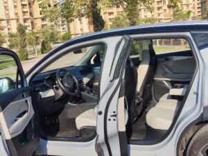 وتمتد لائحة تجهيزات الراحة بشكل كبير للسيارة يفوق التوقعات للفئة الأعلى من السيارة التى كانت محل تجربتنا والتى حملت تسمية (Hyper Halo)… شأن مقعد السائق والراكب الذى بجانبه رياضيى التصميم والعاملين بالكهرباء ، المرايا الجانبية العاملة بالكهرباء أليكترونياً ، تكييف الهواء ثنائى الإتجاهات الأليكترونى ويعمل باللمس مع مخارج للمقاعد الخلفية بخلاف نظام وصلات الـ USB لركاب المقدمة والمؤخرة ، كاميرا 540 درجة ، حساسات ركن بالخلف ، فتحة سقف البانورامية، وغيرها العديد والعديد من التجهيزات.