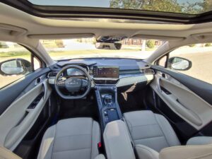 إنطباع قيادة LYNK & CO (06) يمكن وصفها ببساطة شديدة (السيارة الـ كروس أوفر – العائلية الشبابية االنشطة التى تفوق توقعاتك) ، فالأمر يبدأ بمدى تفاعل السائق والركاب مع البيئة والرحابة الداخلية لمقصورة الركاب وخاصة مع نوعية الخامات المستخدمة وتفوق تصميمها وإستخدامها ، وهو ما ترجم مدى شعور كافة الركاب بالراحة – مع كافة الأعمار .. الصغار ومتوسطى العمر وكبار السن – حتى على القيادة لمسافات طويلة حتى مع التصميم الرياضى لمقاعد المقدمة التى تلتف حول أجسام الركاب.