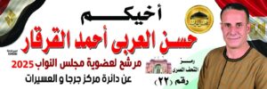 أكد حسن أحمد العربي القرقار، المرشح لعضوية مجلس النواب عن دائرة جرجا والعسيرات، أن ترشحه جاء من منطلق الإحساس بالمسؤولية تجاه أهله وأبناء منطقته، وليس رغبة في منصب أو وجاهة اجتماعية.