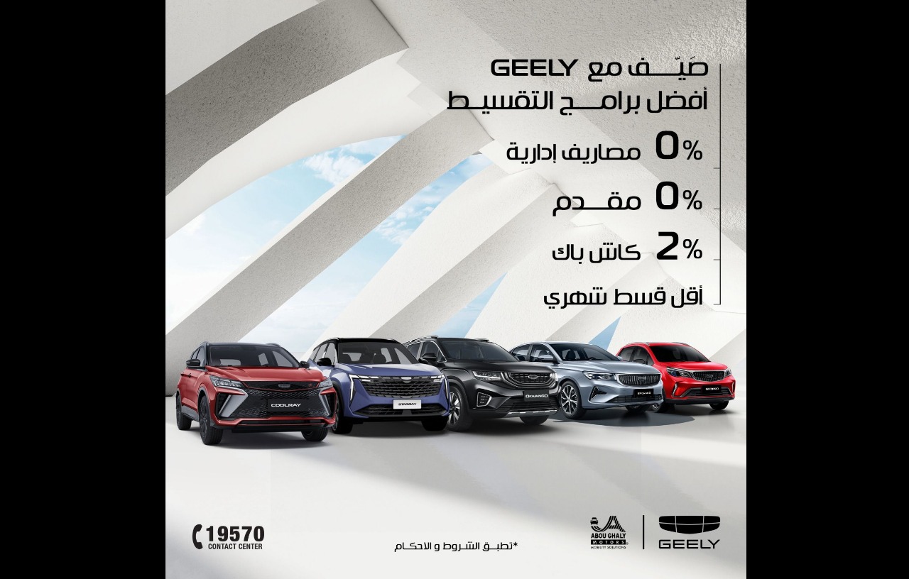 أطلقت مجموعة أبو غالى للسيارات – قطاع سيارات جيلى – حملتها الصيفية لعملاءها المقبلين على شراء سيارات جيلى ، حيث قدمت عرضها الإستثنائى المتكامل .. فقامت بتقديم برنامجاً للتقسيط يشمل مجموعة من المميزات والتى كان أهمها: