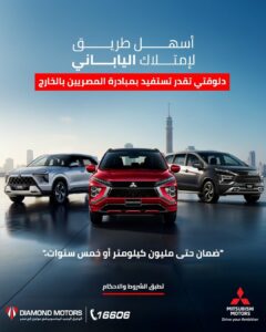 في خطوة جديدة تؤكد ريادتها في السوق المصري، أعلنت دايموند موتورز، الوكيل الحصري لسيارات ميتسوبيشي موتورز في مصر والتابعة لمجموعة الملا الكويتية، عن إطلاق خدمات البيع لعملاء “مبادرة استيراد سيارات المصريين المقيمين بالخارج”، مع تقديم باقة متكاملة من الخدمات الحصرية المصممة خصيصًا لتلبية احتياجاتهم.