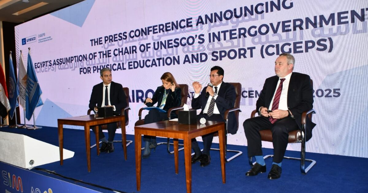 نظّمت وزارة الشباب والرياضة، مساء اليوم، مؤتمرًا صحفيًا للإعلان الرسمي عن تولّي جمهورية مصر العربية، ممثلة في معالي الأستاذ الدكتور أشرف صبحي وزير الشباب والرياضة، رئاسة اللجنة الحكومية الدولية للتربية البدنية والرياضة (CIGEPS) التابعة لمنظمة اليونسكو، وذلك بحضور قيادات منظمة اليونسكو، وممثلي السلك الدبلوماسي، وعدد من القيادات الرياضية والإعلامية.