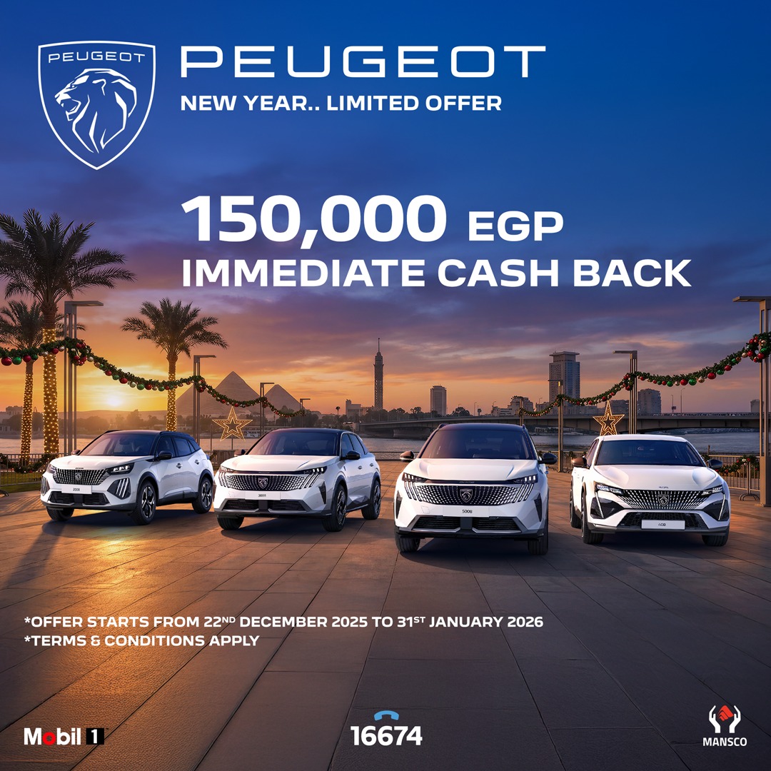 متابعة القراءةأعلنت مانسكو أوتوموتيف – الوكيل الحصري لعلامة بيجو في مصر – عن إطلاق عرض كاش باك محدود بالتزامن مع بداية العام الجديد، في خطوة تعكس التزام العلامة الفرنسية بمكافأة ثقة عملائها ومنحهم فرصة حقيقية لامتلاك سيارة بيجو التي يحلمون بها، مع تقديم قيمة مضافة حقيقية وتجربة شراء سلسة تعزز العلاقة