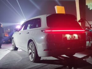 وأخيرًا السيارة الثالثة L9 والتي تعبر عن الفخامة القصوى، بمحرك 1.5T، مدى قيادة يصل إلى 1,412 كم وفق معيار CLTC، ومقاعد ذات 18 نقطة تدليك، ورؤية محيطية 360°، وشاشة معلومات و co-pilot أمامية ، وشاشة ترفيه خلفية 21.4 بوصة، ونظام صوت Platinum Audio مع 21 سماعة، وصندوق حفظ للمثلج والساخن.
